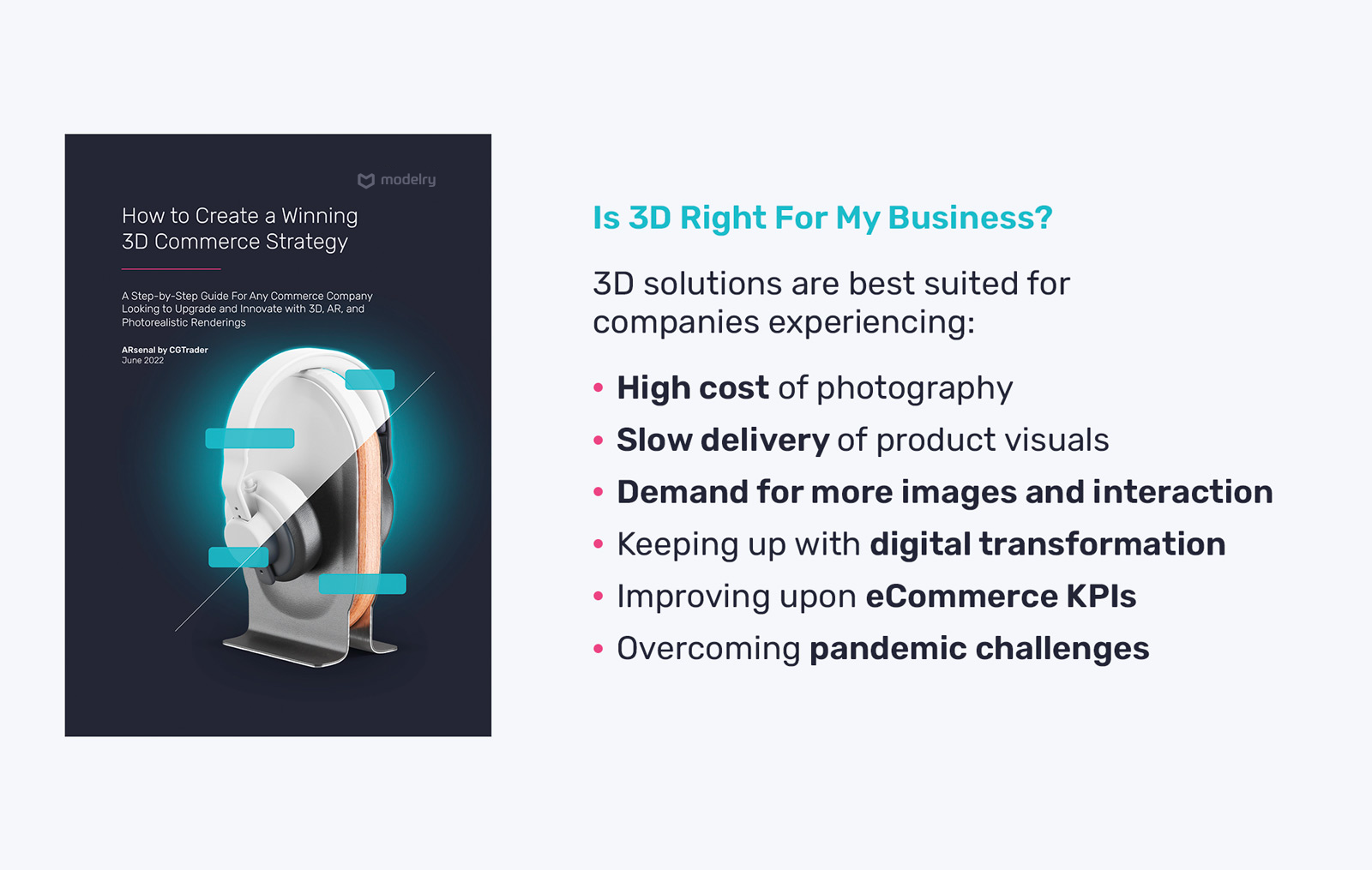 With over 15 years of experience delivering best-in-class 3D models and solutions to clients around the world, we are excited to announce our newest whitepaper: a complete, step-by-step guide for any commerce company looking to create a winning 3D commerce strategy.